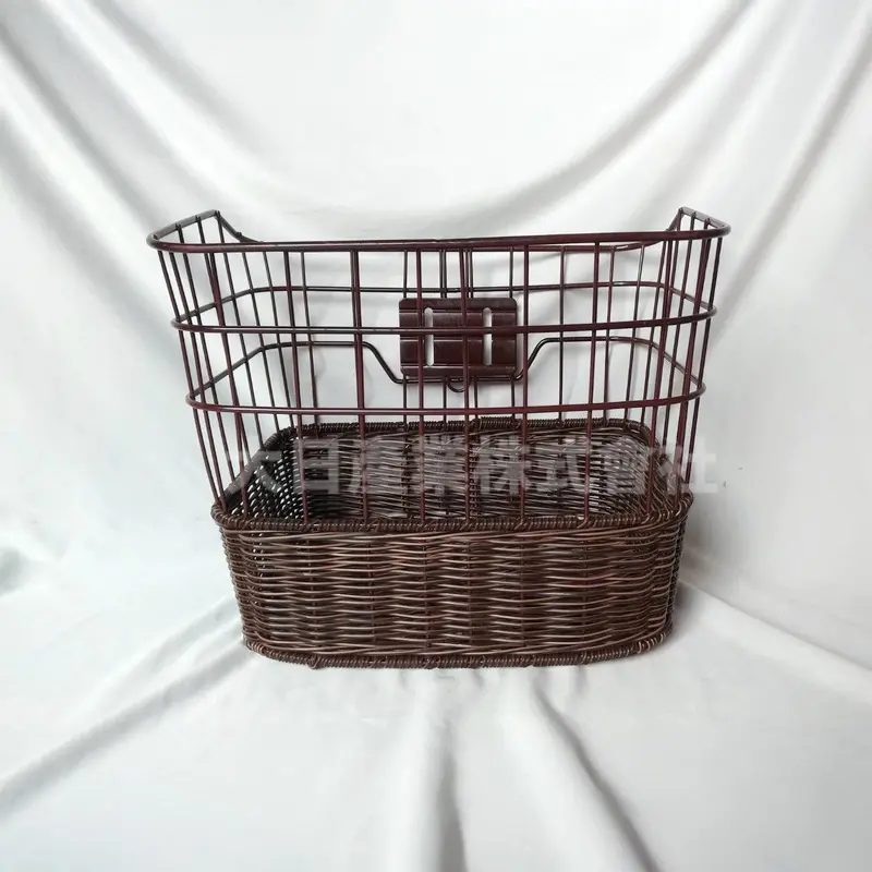 人工編製鐵框強固塑藤車籃,鐵條經過高溫塗裝, 附配 304 不銹鋼固定夾片與螺絲